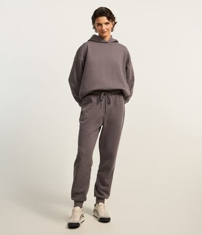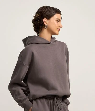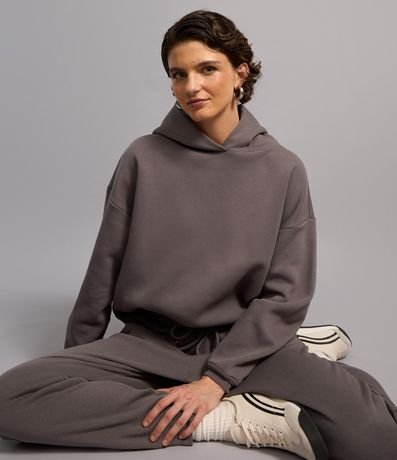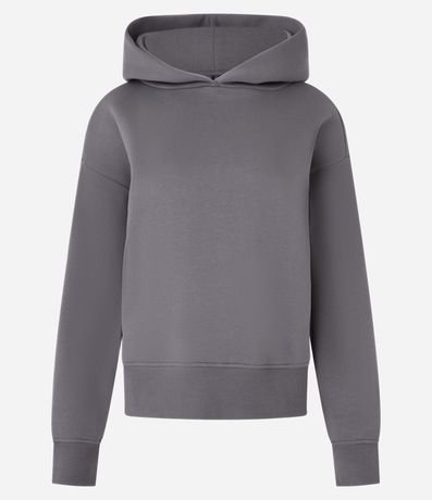 Blusão básico com capuz na gola, confeccionado em moletom com forro em fleece e sem estampa.