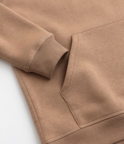 Ref: Casaco infantil básico, de modelo fechado, confeccionado em moletom com forro fleece, de material mais sustentável, com capuz na gola, mangas longas, bolsos e sem estampa.