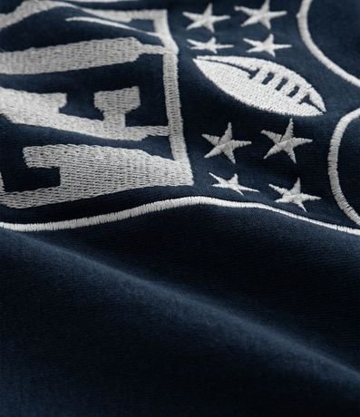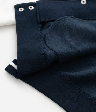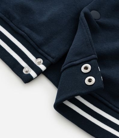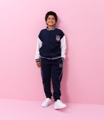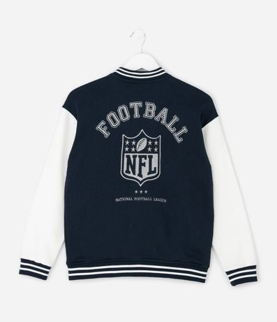 Ref: Casaco infantil estilo bomber confeccionado em moletom sem felpa, com gola esportiva, mangas contrastantes e modelagem relaxed que proporciona liberdade de movimentos. Possui bolsos frontais, fechamento por botões de pressão e bordados da NFL, a famosa liga de futebol americano reconhecida mundialmente por seus jogos emocionantes e atmosfera esportiva vibrante. Confeccionado em algodão certificado BCI.