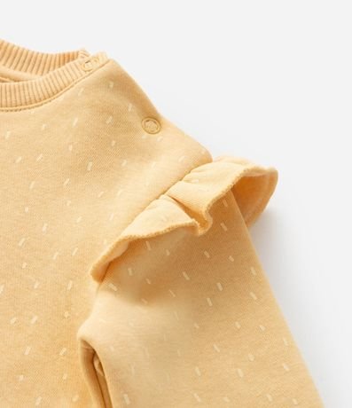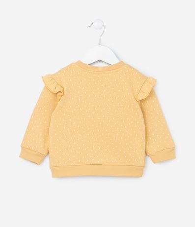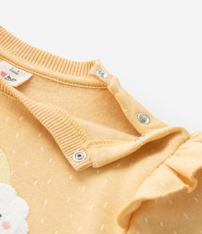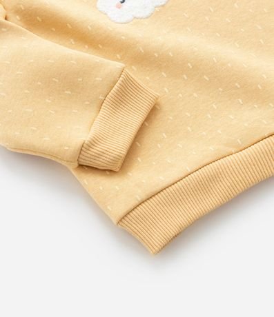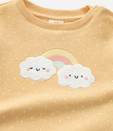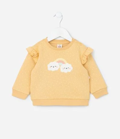 Ref: Casaco infantil confeccionado em moletom com forro quentinho, de material mais sustentável. Possui gola redonda, mangas longas, babadinho nas cavas e bordado de arco-íris, com fundo em poá.