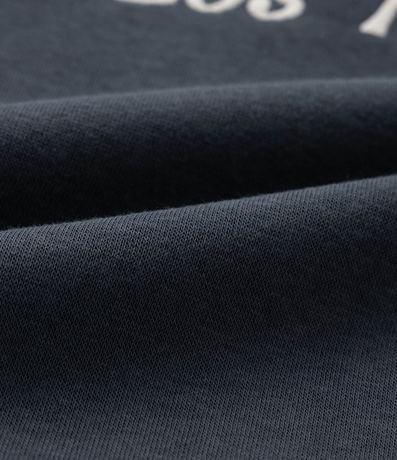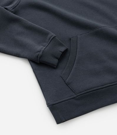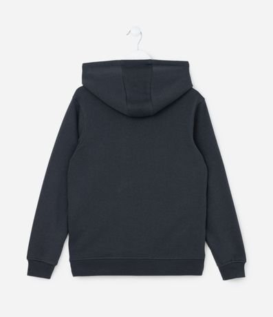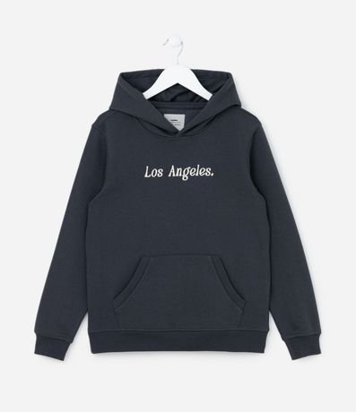 Casaco infantil de modelo fechado, confeccionado em moletom com forro quentinho, gola com capuz, mangas longas, bolso canguru e bordado Los Angeles.