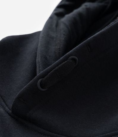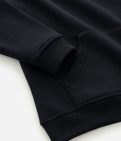 Casaco infantil confeccionado em poliéster certificado GRS e boas práticas ambientais, com felpa interna e capuz ajustável. Possui manga longa, bolso canguru e patch emborrachado aplicado no peito. Estrutura reforçada e superfície lisa tornam o modelo ideal para uso diário.