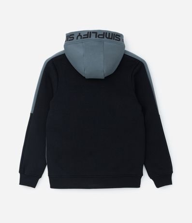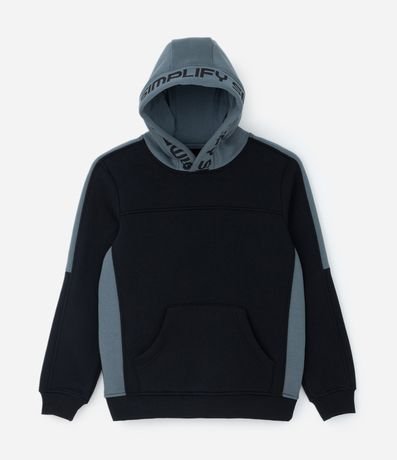 Ref: Casaco fechado infantil, confeccionado em moletom com forro fleece, gola com capuz, mangas longas, recortes e lettering no capuz.