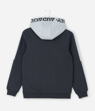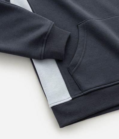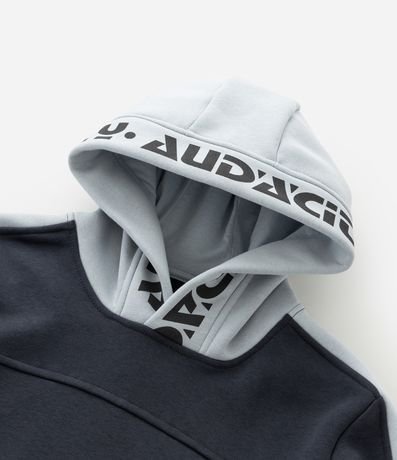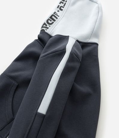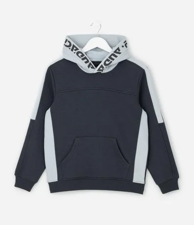 Ref: Casaco infantil confeccionado em moletom com felpa interna, em algodão certificado BCI. Possui capuz com tape aplicado, mangas longas, bolso frontal estilo canguru e recortes contrastantes, garantindo visual moderno e urbano para compor looks casuais.