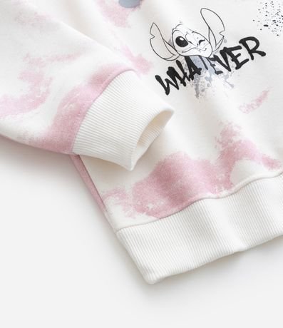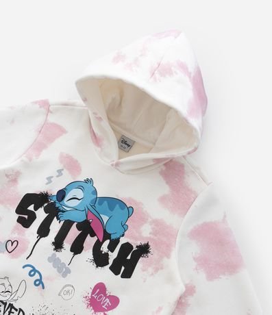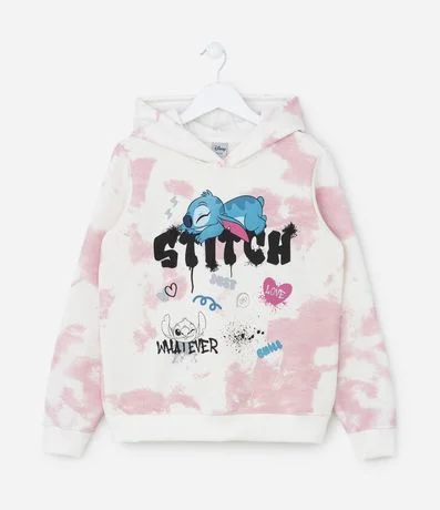 Ref: Casaco infantil de modelo fechado, com capuz na gola, mangas longas, forro em fleece quentinho e estampa divertida do Stitch com fundo tie dye. Feito a partir de processo de boas práticas ambientais e algodão certificado bci, mais sustentáveis.