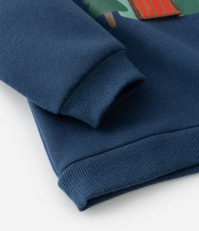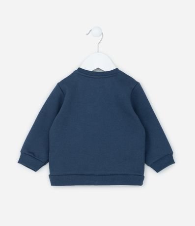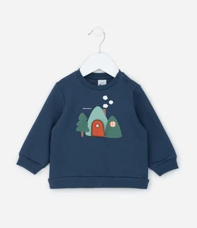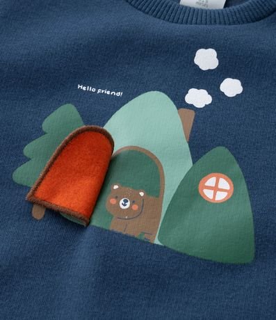 Casaco infantil de modelo fechado, confeccionado em moletom quentinho, com gola redonda, mangas longas e estampa interativa de ursinho na casinha, com portinha que abre.