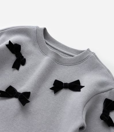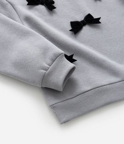 Ref: Casaco infantil de moletom com forro quentinho, feito a apartir de material e praticas mais sustentáveis. Possui gola redonda, mangas longas e lacinhos contrastantes em veludo aplicados.