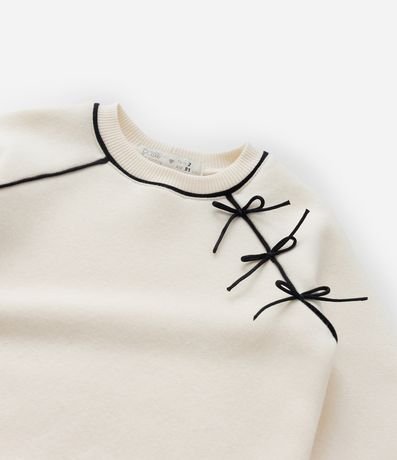 Ref: Casaco infantil confeccionado em moletom com forro quentinho, de material mais sustentável. Possui gola redonda, mangas longas com lacinhos no ombro e viés contrastantes, super fofo!