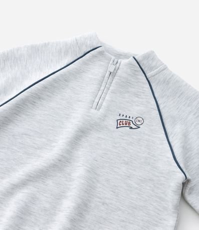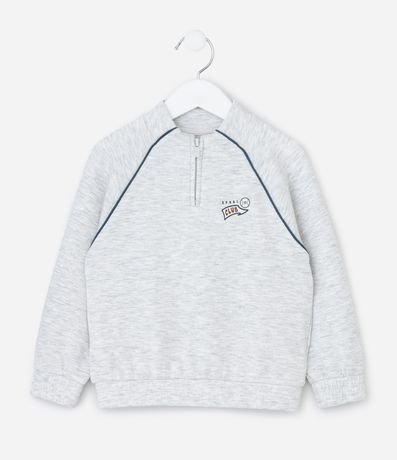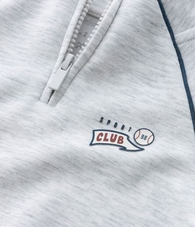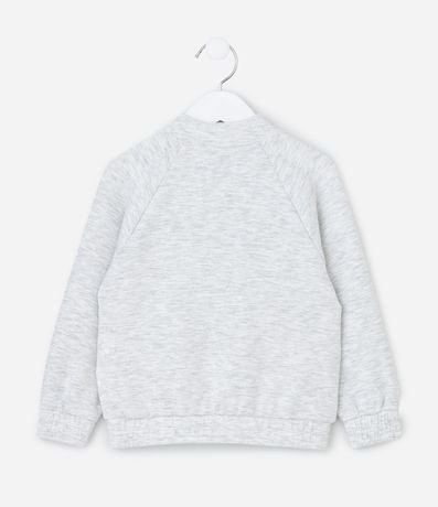 Ref: Casaco infantil confeccionado em moletom sem felpa com gola alta e meio zíper, mangas longas e estampa localizada no peito. Detalhe em viés contrastante e acabamento confortável. Confeccionado em viscose certificada e boas práticas ambientais.