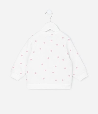Casaco infantil confeccionado em moletom com felpa interna, em algodão certificado BCI. Possui gola redonda, mangas longas e estampa localizada de poodle com detalhes delicados, além de poás por toda a peça. Fechamento no ombro facilita o vestir, garantindo conforto no dia a dia.