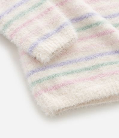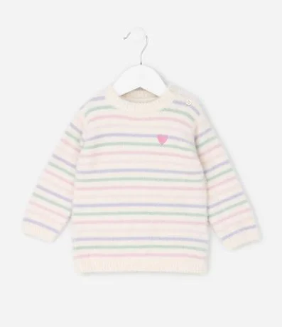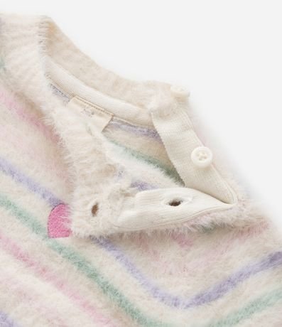 Ref: Casaco infantil confeccionado em chenille macio, oferecendo toque aconchegante e visual peludinho. Possui gola redonda, mangas longas, listras delicadas, aplicação de coração bordado no peito e abertura lateral com botões.
