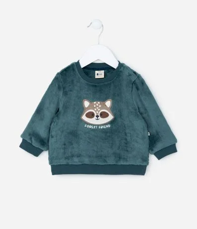 Ref: Casaco fechado infantil confeccionado em fleece quentinho, com gola redonda, mangas longas e bordado de guaxinim no peito.