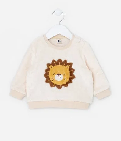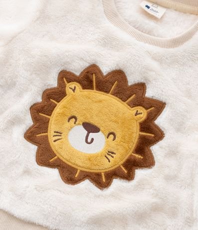 Ref: Casaco fechado infantil confeccionado em fleece quentinho, com gola redonda, mangas longas e bordado de leãozinho no peito.