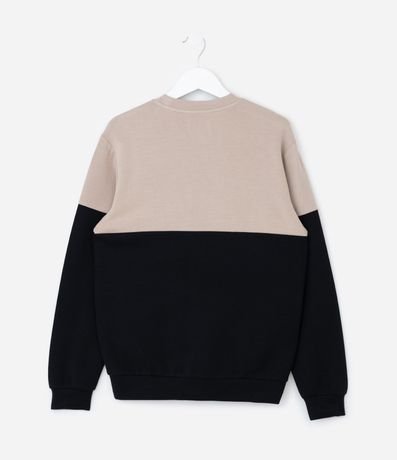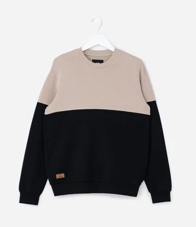 Ref: Casaco infantil de modelo fechado, confeccionado em modal, com gola redonda, mangas longas e bicolor.