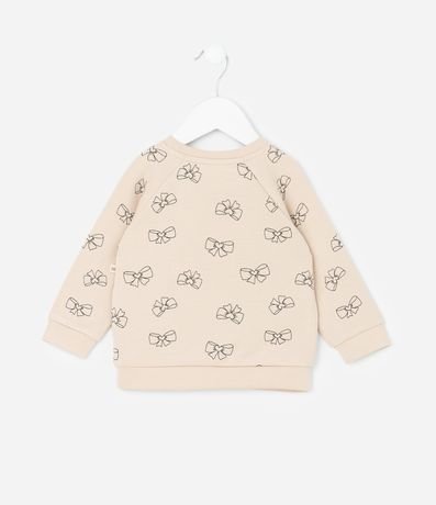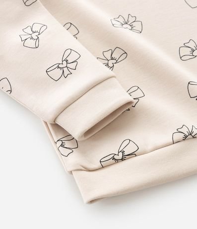 Ref: Casaco infantil confeccionado em modal com poliéster e elastano, com gola redonda, mangas longas e estampa fullprint de laços. Possui punhos e barra em ribana, estrutura macia e acabamento fechado que facilita o uso diário dos pequenos.