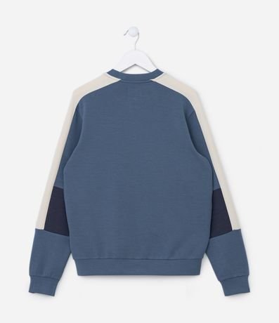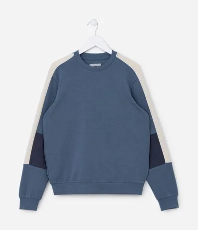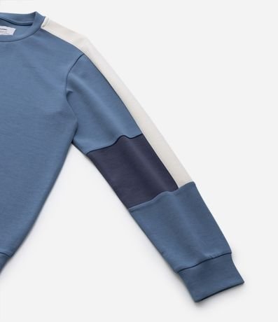 Casaco infantil de modelo fechado, confeccionado em modal, com gola redonda e mangas longas. Possui recortes contrastantes.