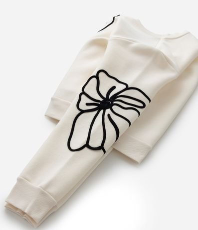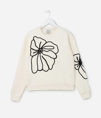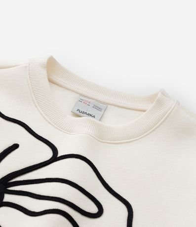 Ref: Casaco infantil confeccionada em moletom com forro fleece, quentinho e de material mais sustentável. Possui gola redonda, manga longa e bordado de flor em corda.