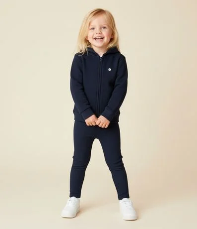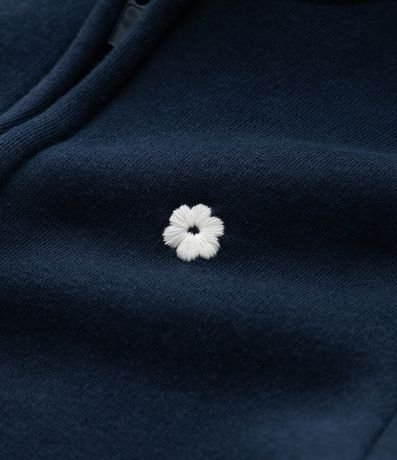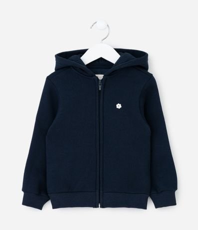 Ref: Casaco infantil confeccionado em moletom pesado, com forro fleece. Possui capuz, barra e punhos ajustados, fechamento frontal por zíper e bordado de flor no peito.