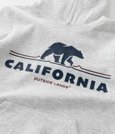 Ref: Casaco infantil em moletom com felpa, capuz e bolso canguru. Possui estampa localizada com lettering “California” e urso, trazendo estilo casual para os dias mais frescos. Confeccionado em algodão certificado BCI e boas práticas ambientais, garantindo conforto e moda responsável.