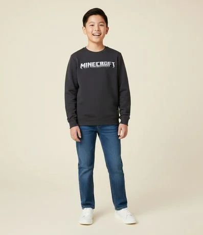 Ref: Casaco infantil de modelo fechado, confeccionado em moletom com forro fleece. Possui gola redonda, manga longa e estampa Minecraft.