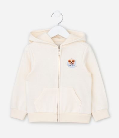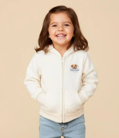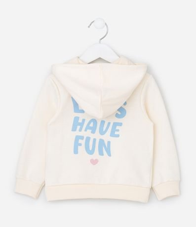 Ref: Casaco infantil confeccionado em moletom mais sustentável através de boas práticas ambientais, no modelo aberto. Possui capuz, manga longa, barras ajustadas, fechamento em zíper, bolso canguru e estampa lettering traseira "Let´s have fun".