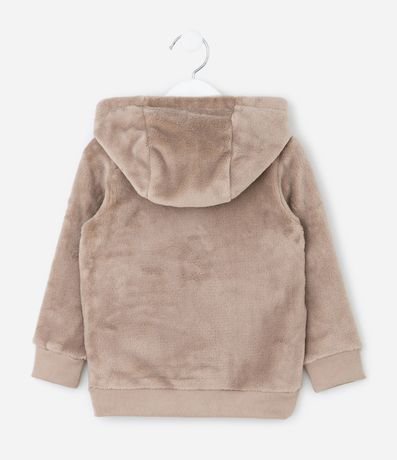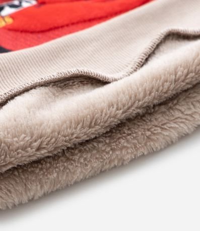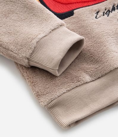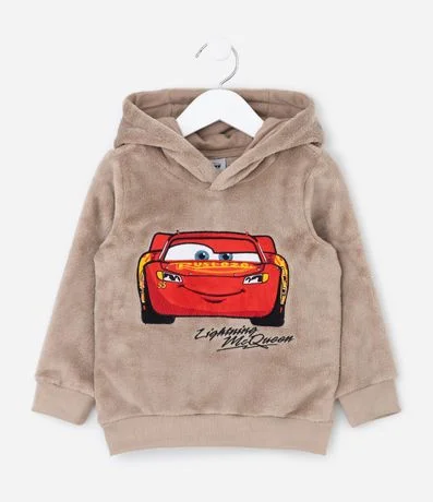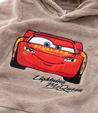 Ref: Casaco infantil modelo regular confeccionado em sherpa tipo carneirinho com toque macio. Possui capuz, mangas longas, punhos canelados e bordado frontal do personagem Relâmpago McQueen, protagonista da animação Carros, conhecida por aventuras e corridas cheias de emoção. Peça aconchegante para looks de inverno.