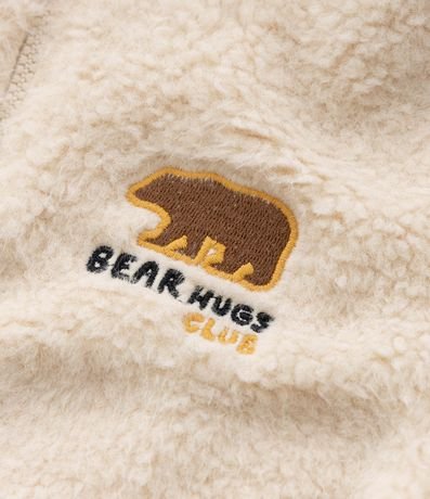 Ref: Casaco infantil de modelo fechado, confeccionado em sherpa quentinha, ideal para dias frios! Possui capuz na gola, fechamento por zíper, manga longa, bolsos e bordado de urso no peito.