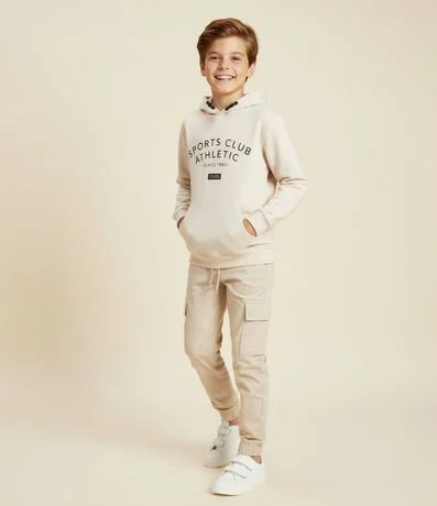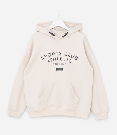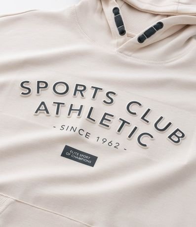 Ref: Casaco infantil em tech fleece apresenta capuz estruturado, bolso canguru e mangas longas, confeccionado em viscose certificada. Possui estampa SPORTS CLUB ATHLETIC em efeito embossed, oferecendo aquecimento confortável e estilo esportivo para composições casuais nos dias mais frios.