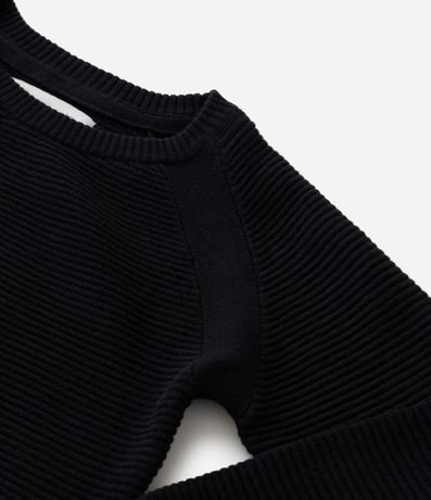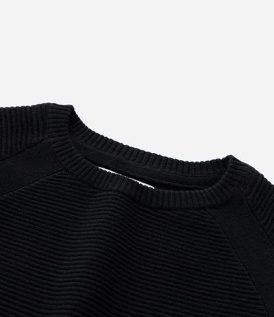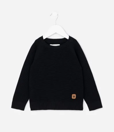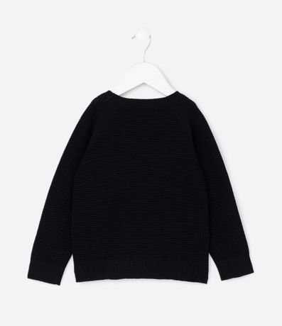 Ref: Casaco infantil confeccionado em algodão certificado BCI e boas práticas ambientais. Possui gola redonda, mangas longas raglan e superfície texturizada em tricô retilíneo. Conta com punhos e barra canelados, garantindo maciez.