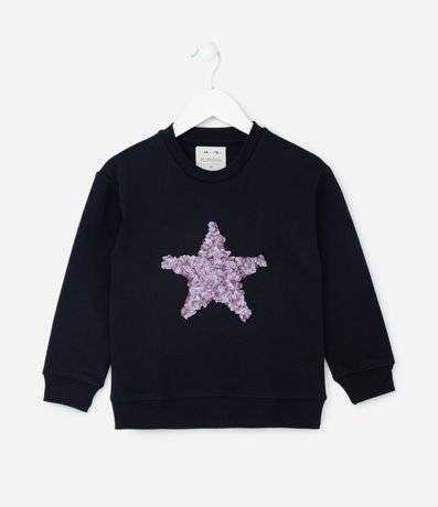 Ref: Casaco infantil de modelo fechado, confeccionado em moletom com forro quentinho, gola redonda, manga longa e bordado de estrela.