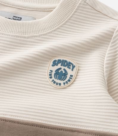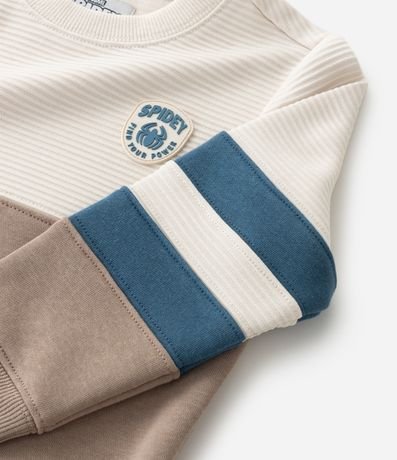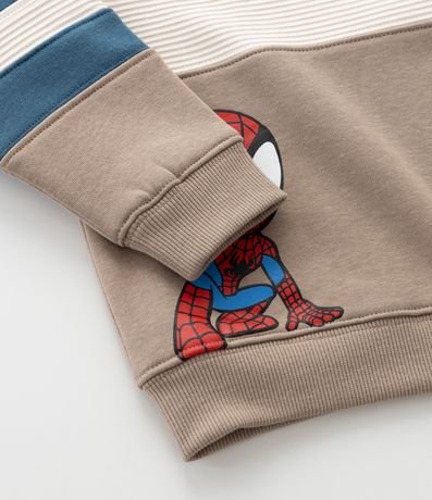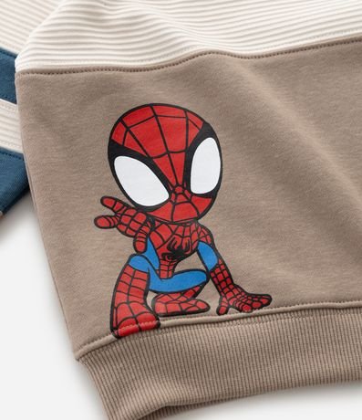 Ref: Casaco infantil de modelo fechado, confeccionado em algodão mais sustentável, com forro quentinho, gola redonda, manga longa, recortes contrastantes e estampa do Homem-Aranha Sipdey.