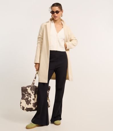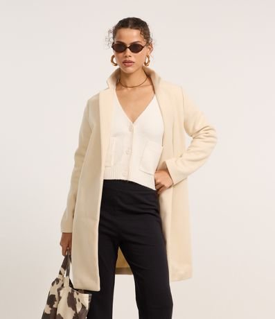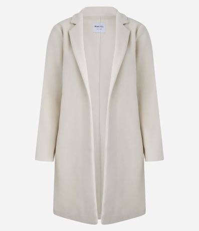 Ref: Casaco alongado com gola v e lapela, manga longa, confeccionado em polivelour e sem abotoamento.