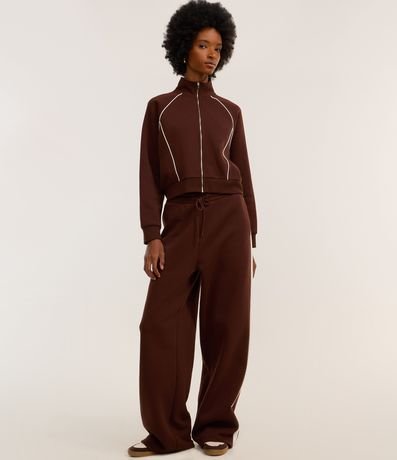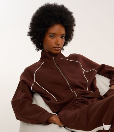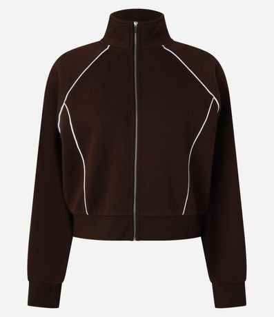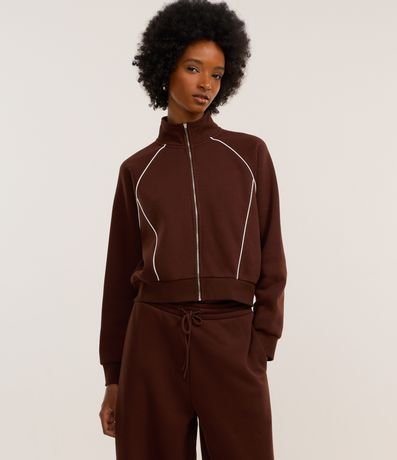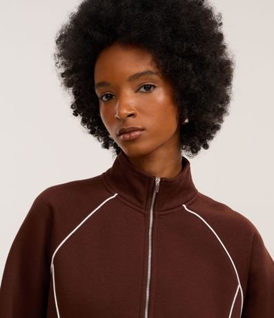 Casaco Moletom com Gola Alta e Detalhe Contrastante