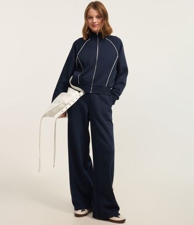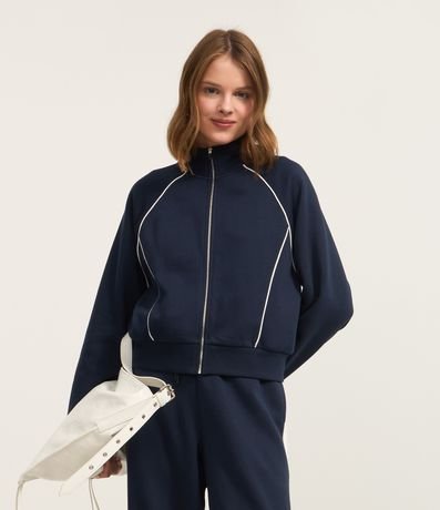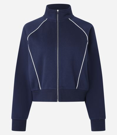 Casaco Moletom com Gola Alta e Detalhe Contrastante