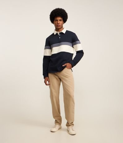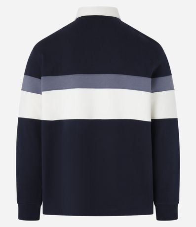 Ref: Casaco masculino confeccionada em moletom mais sustentável, modelo fechado, gola polo com botões, manga longa, punhos ajustados e estampa blocos de cor.