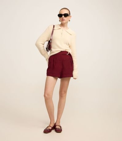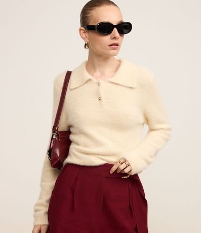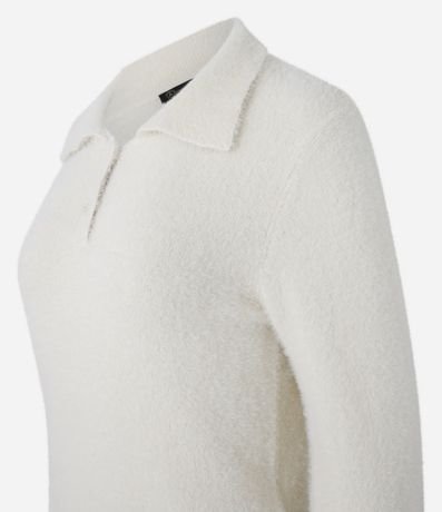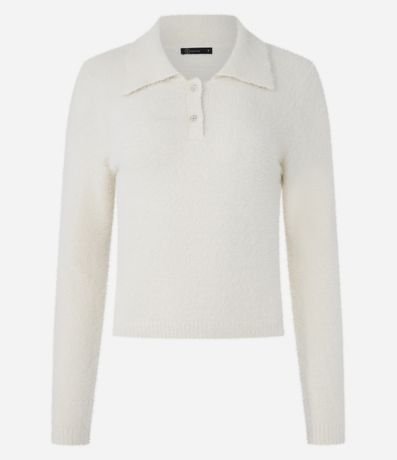 Ref: Casaco com pelinhos, confeccionado em tricô leve com gola polo com botões na vista.