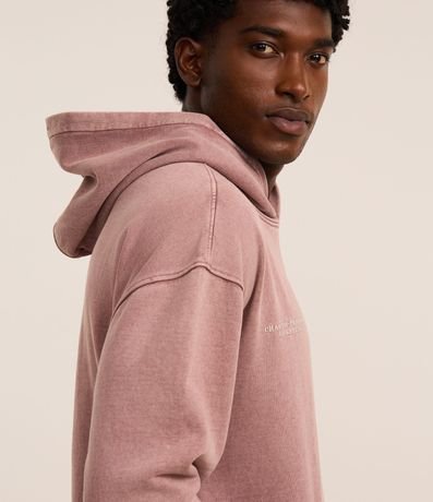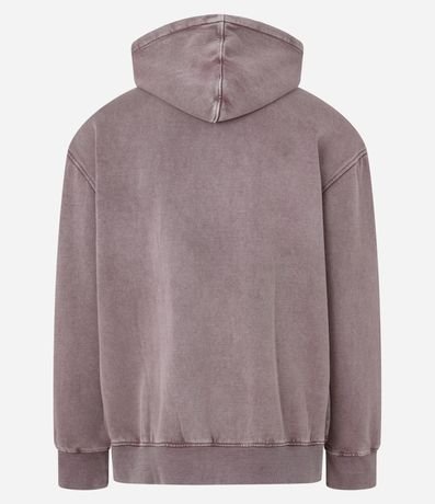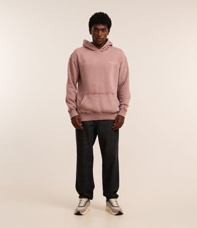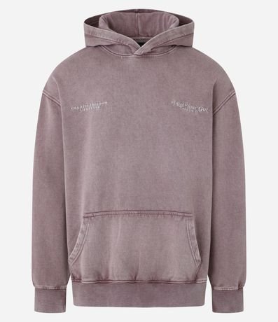 Casaco fechado confeccionado em moletom mais sustentável, capuz, bolso canguru. Peça no modelo relaxed com estampa localizada lettering e manga longa e barra ajustadas.