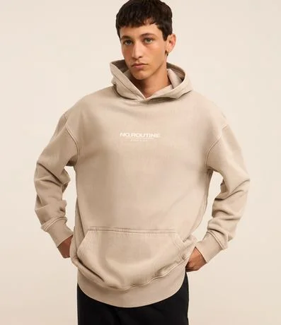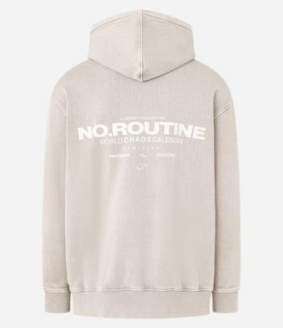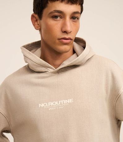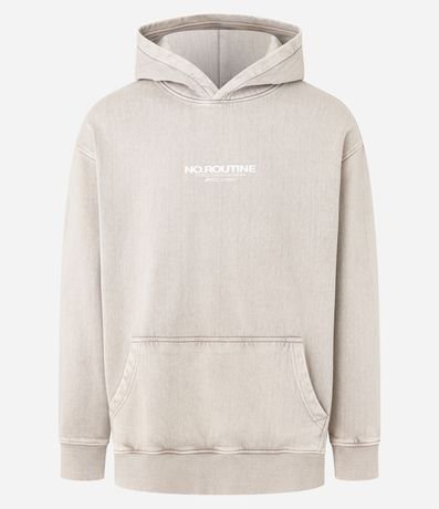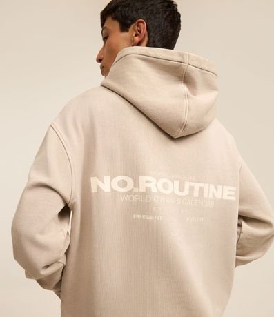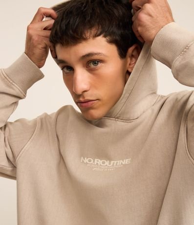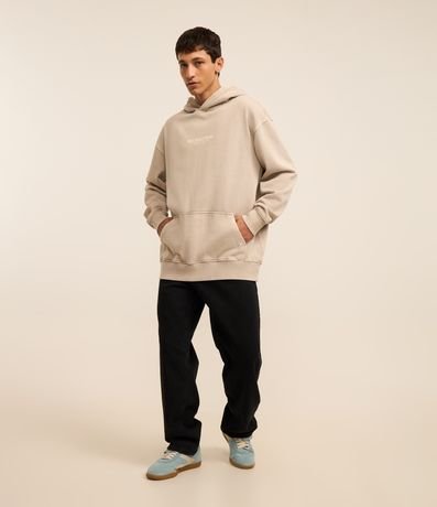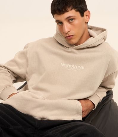 Casaco fechado masculino confeccionada em moletom com felpa no modelo relaxed, possui capuz, manga longa, com punhos ajustados, bolso canguru e estampa lettering localizada.