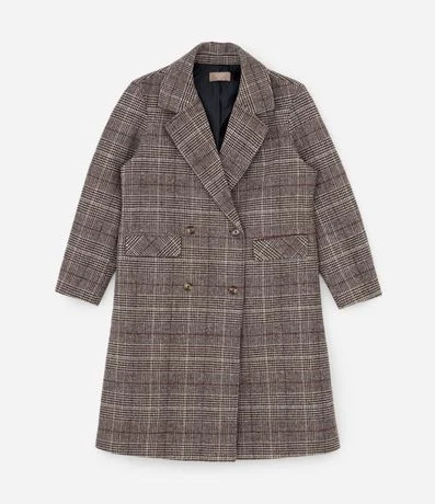 Ref: Casaco feminino confeccionado em Polivelour, no modelo sobretudo. Possui gola lapela, manga longa, abotoamento frontal duplo, bolsos e estampa xadrez.