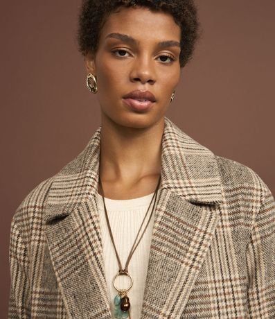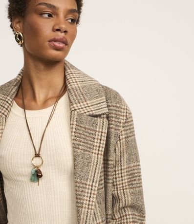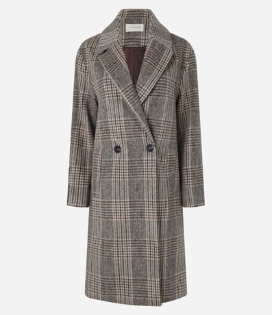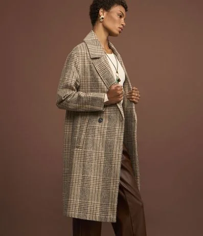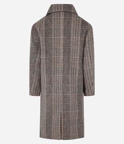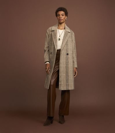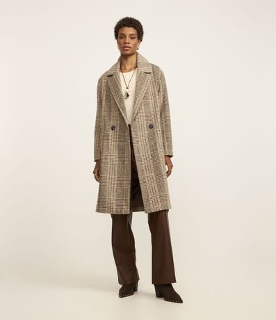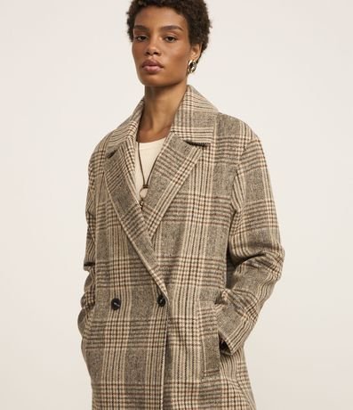 Ref: Casaco alongado confeccionado em polivelour com lapela na gola além de abotoamento frontal e estampa xadrez.