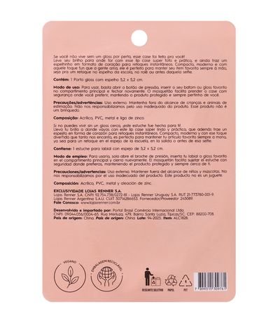 Ref: Contém: 1 Porta gloss com espelho 5,2 × 5,2 cm.