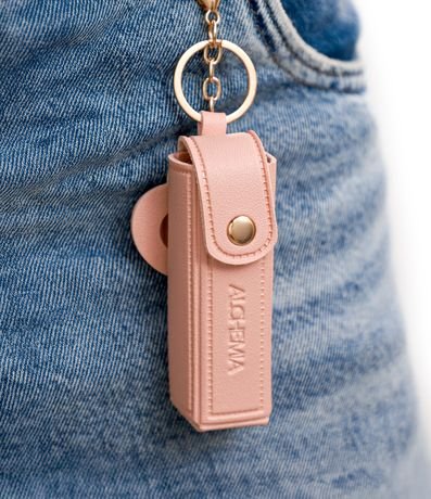Modo de uso: Para usar, basta abrir o botão de pressão, inserir o seu batom ou gloss favorito no compartimento principal e fechar novamente. O mosquetão facilita prender o case com segurança onde você preferir, mantendo o produto protegido e sempre pertinho de você.