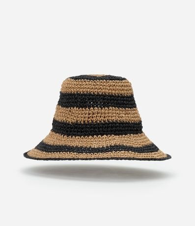 Ref: Chapéu bucket de aba curta, confeccionado em palaha e com listras.