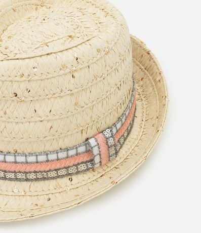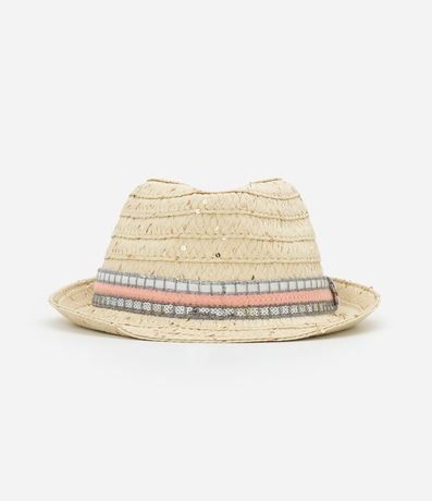 Ref: Chapéu de palha infantil com faixa em paetês e listras, para divertir os dias de praia!