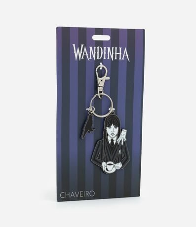 Ref: Chaveiro de metal da Wandinha e seu Corvo, com lagosta e anel de elo entre imagens.