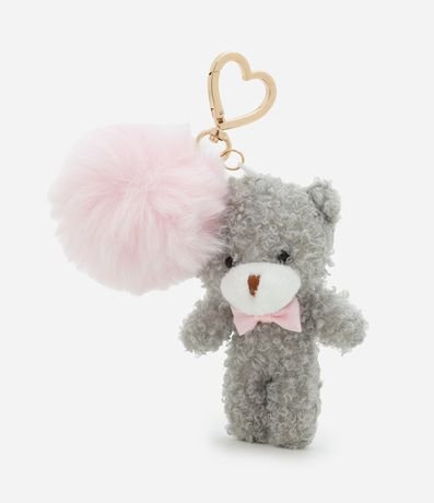 Chaveiro de Ursinho com Pompom e Mosquetão de Coração