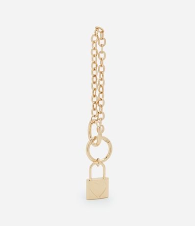 Ref: Bag charm de metal com corrente, duas argolas e cadeado decorativo.
