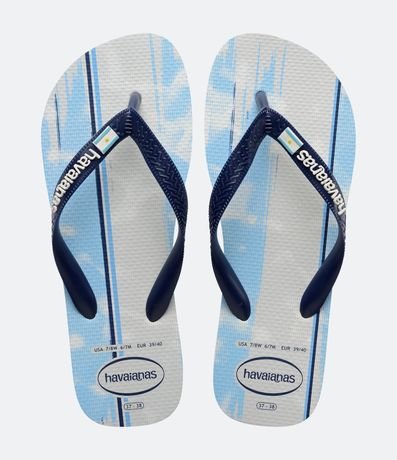 Ref: Chinelo masculino, modelo tradicional. Possui bico redondo, cabedal com tiras, com estampa da Argentina e sem fechamento, com bandeira da Argentina.