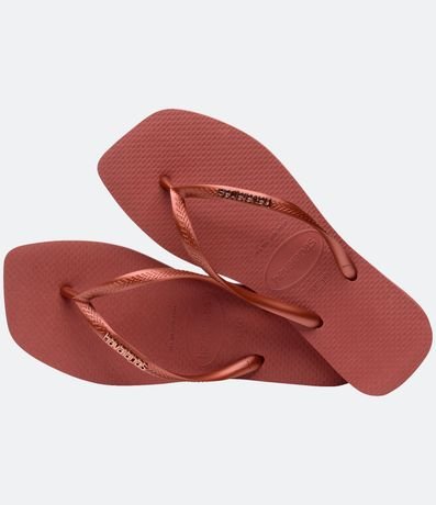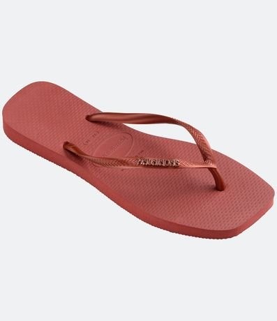 Ref: Chinelo havaianas, modelo slim square, com bico quadrado e tiras brilhosas com logo metalizado.
