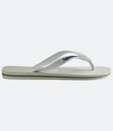 Ref: Chinelo masculino, modelo tradicional. Possui bico redondo, cabedal com tiras, sem estampa e sem fechamento, com bandeira do Brasil.